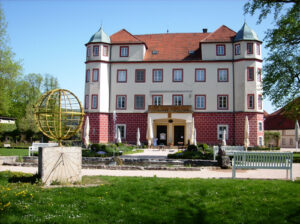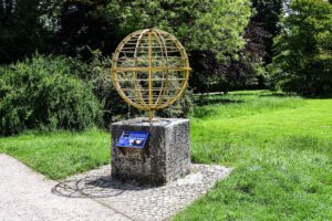 Das 1,4 m durchmessende Sonnenmodell vor dem Schloss steht auf einem Granitblock von 1 m Seitenlänge. Vorne sind auf einer Tafel verschiedene Informationen zur Sonne zu finden. Auf der